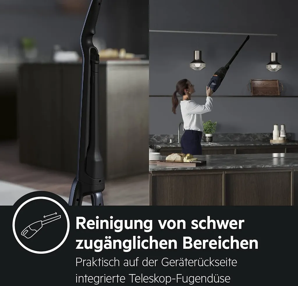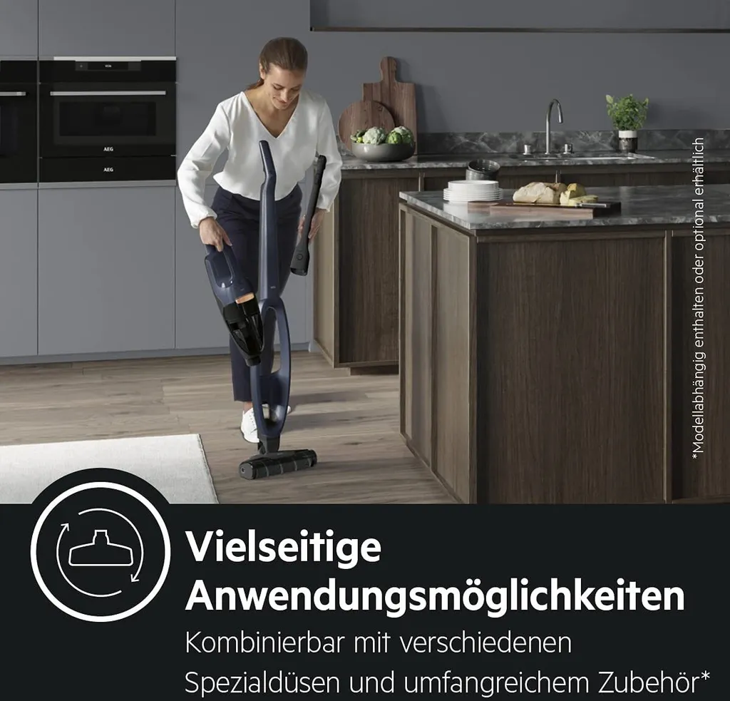 AEG QX7-1-P5IB 2in1 Akku-Staubsauger (Schlanke Bauform, Power-Softrolle, Besonders Effektiv Auf Hartböden, Bis Zu 50 Min Laufzeit, 21,6 Volt, Inkl. Zubehör