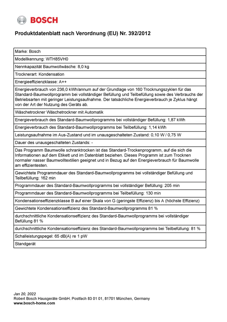 Bosch Serie | 4, Wärmepumpentrockner, 8 Kg WTH85VH0
