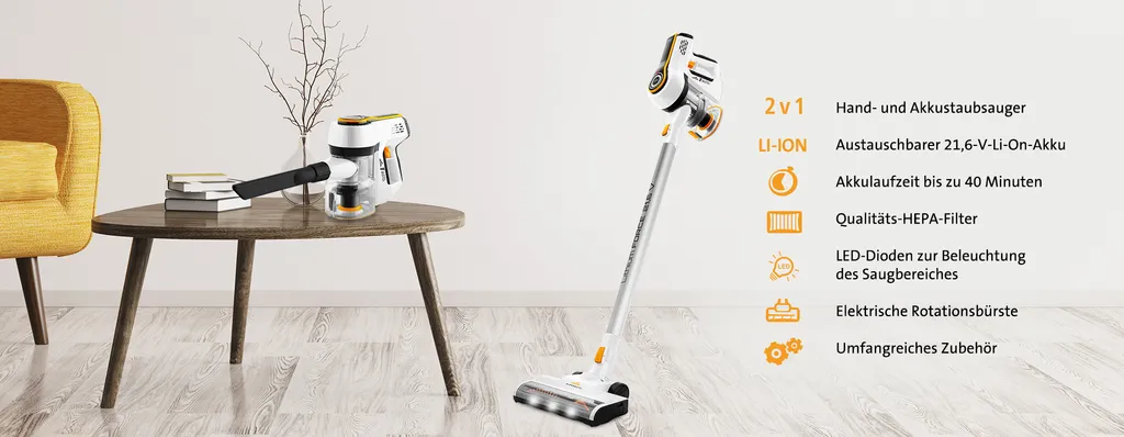 ETA Hand- Und Akkusauger 2in1 SUPERSONIC ETA123190000, Beutellos, Li-ionen Akku 21,6V