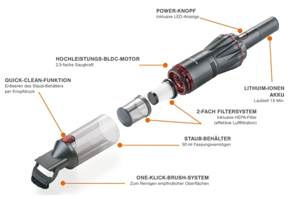 Genius Invictus One 1.0 Akku Handstaubsauger 9 Teile Beutellos Kabellos Autostaubsauger 90W + Zubehör; A28179