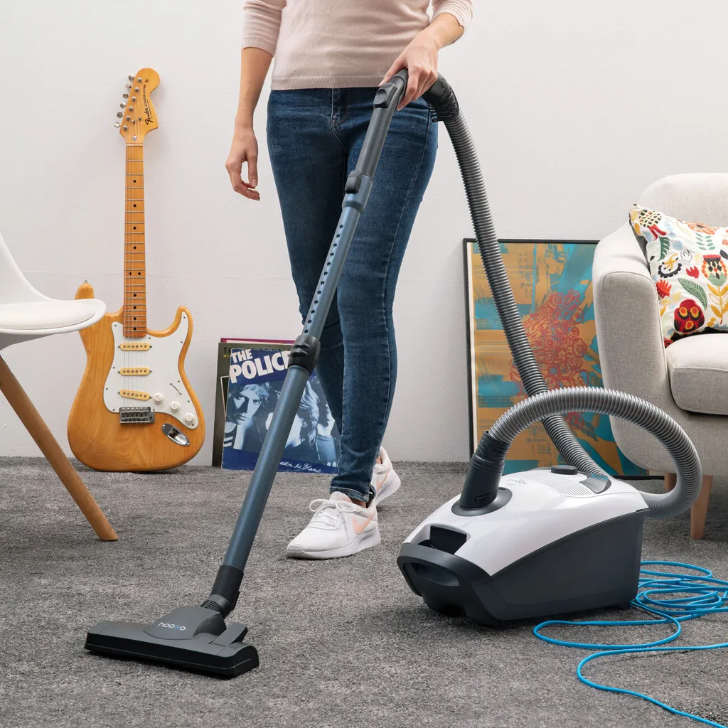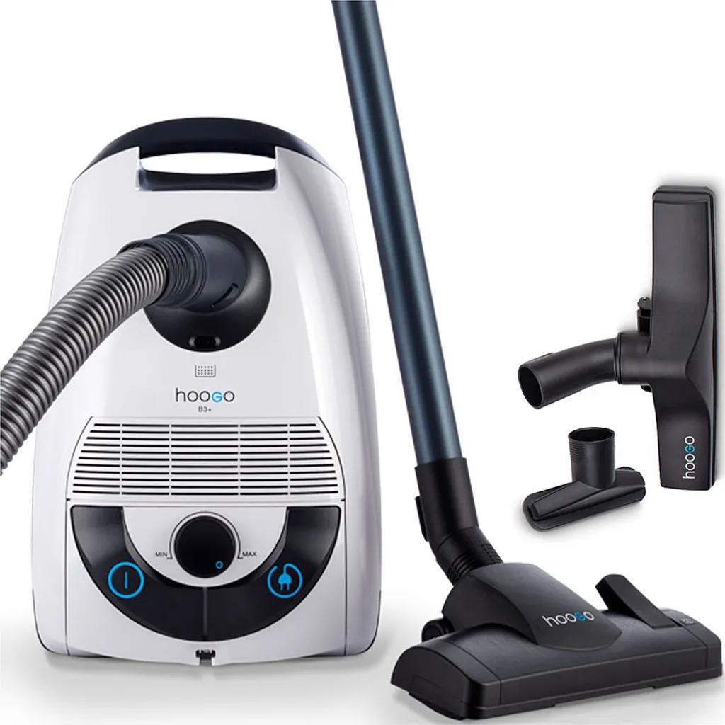 HooGo B3+ Bodenstaubsauger 3 Liter Mit Beutel Inkl. Parkett-, Polster- Und Fugendüse, Möbelbürste, 11m Aktionsradius, HEPA14 Filter, Allergikertauglich