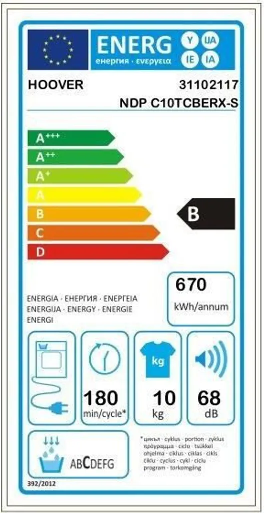 HOOVER H-DRY 500 NDPC10TCBERXS Kondensatortrockner – 10 Kg – ++ – Anthrazit