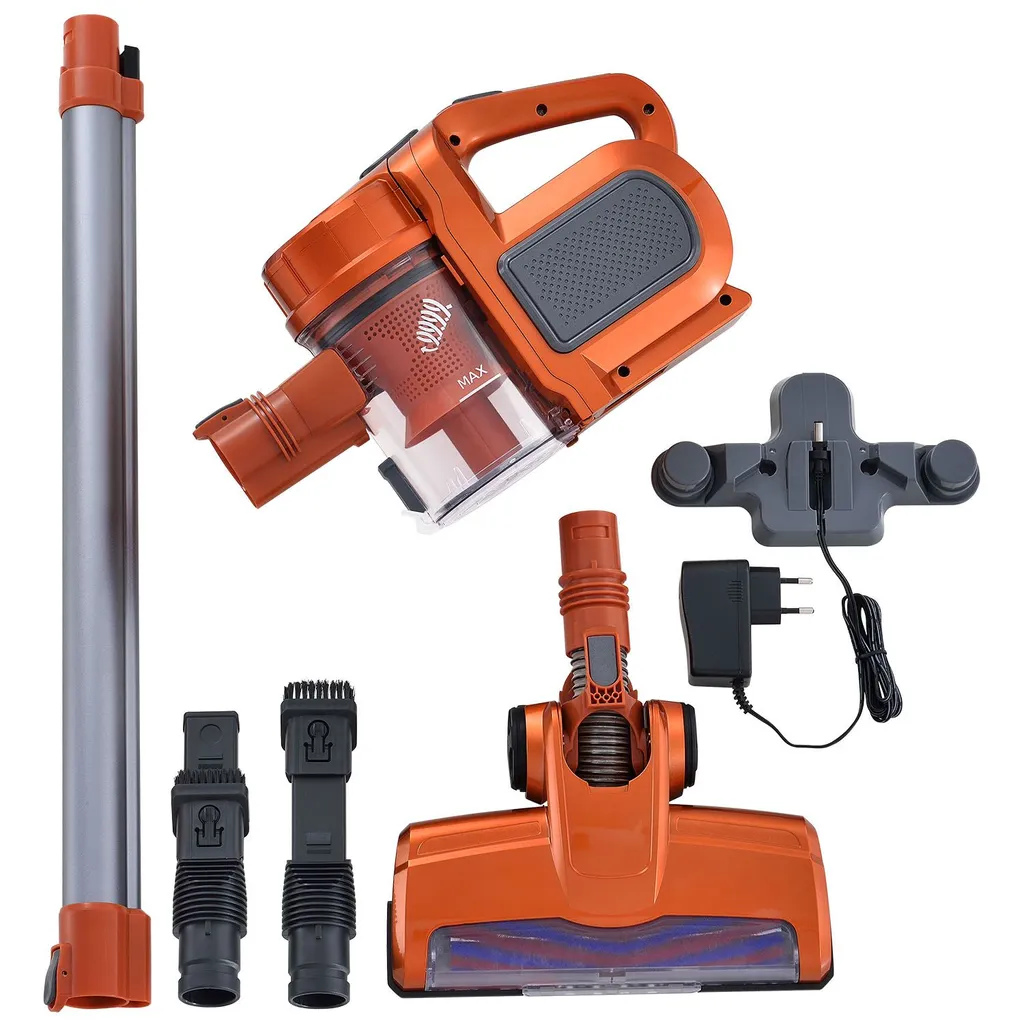 Juskys 2in1 Handstaubsauger & Akku Staubsauger – Beutellos & Kabellos – Bis 55 Min Laufzeit – Lithium-Ionen Akku, Wandhalterung & Ladestation – Gold