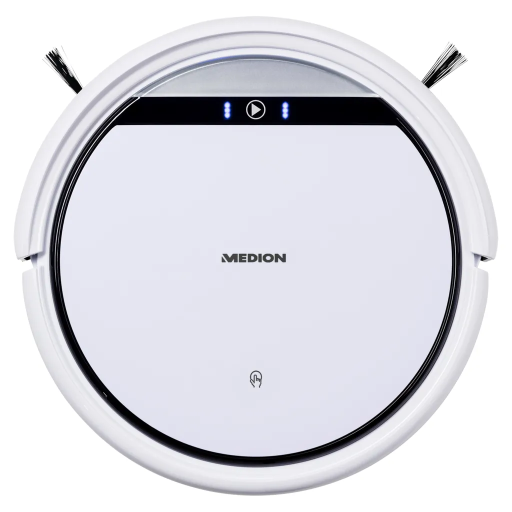 MEDION Saugroboter Mit Ladestation E32 (Modell 2021, Roboterstaubsauger Für Hartböden, Fliesen, Laminat, Tierhaar Optimiert, Direktabsaugung, Autom. Rückkehr Zur Ladestation)