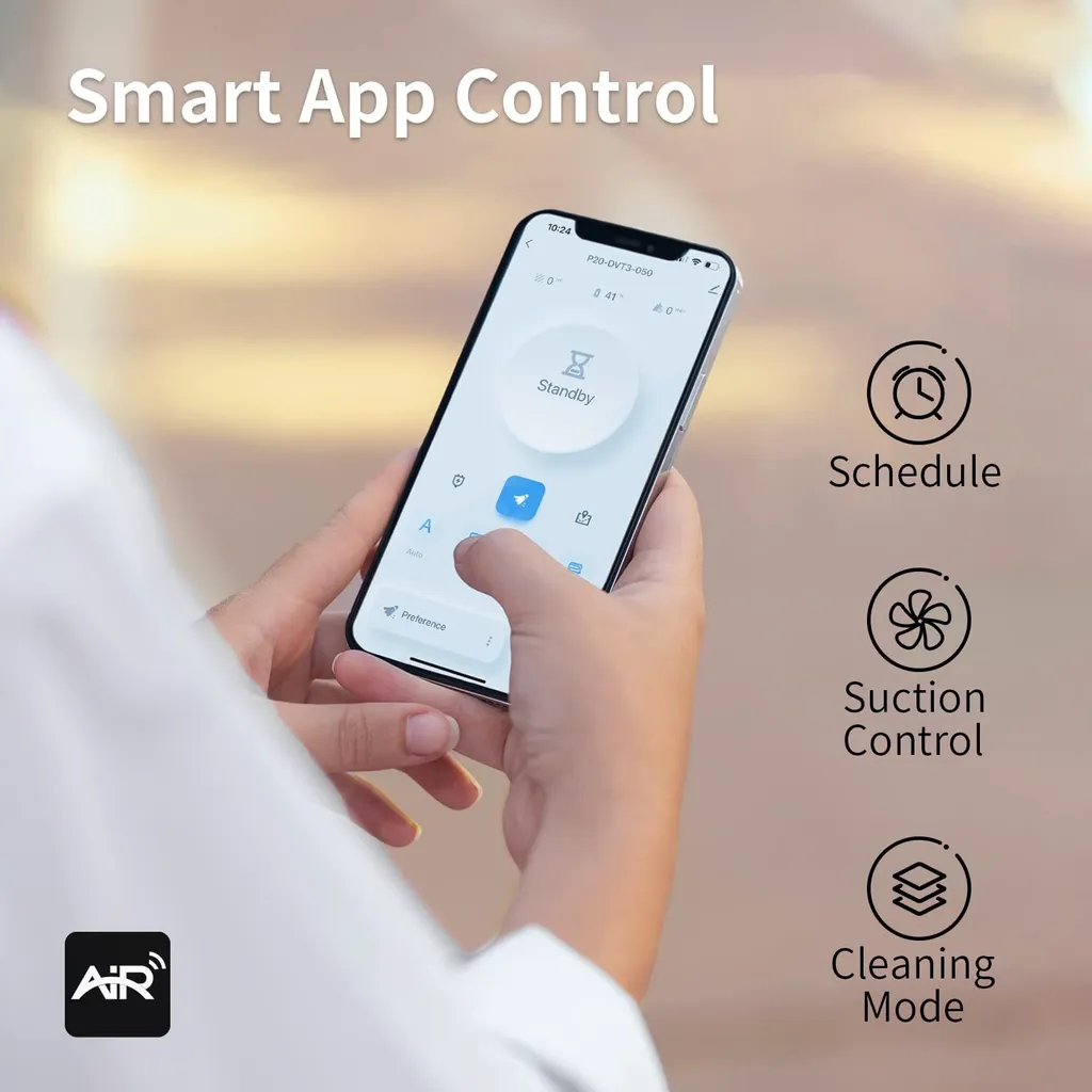 Saugroboter Mit 2800 Pa Saugkraft, Große Staubbox 600ML,APP Steuerung, 120 Min Laufzeit, Staubsauger Roboter WLAN Optimiert Für Teppich Tierhaare Hartböden-AIRROBO P20