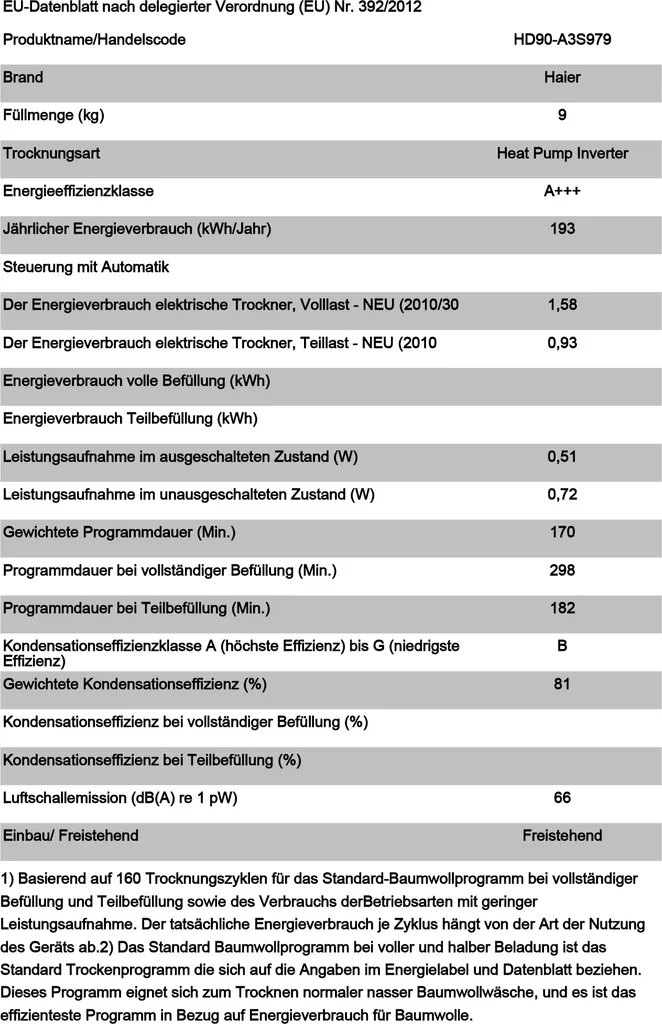 Trockner Wärmepumpentrockner Haier HD90-A3S979 9kg