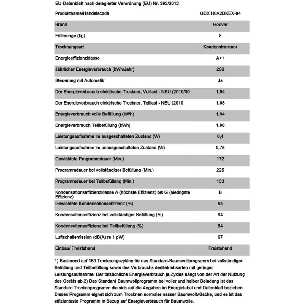 Trockner Wärmepumpentrockner Hoover GDX H8A2DKEX-84/ 8kg